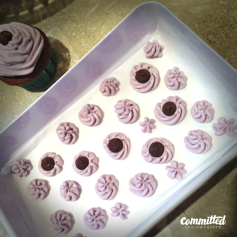 I did have a moment of redemption. I had a little frosting leftover in the piping bag, and figured, why waste it? So I lined a little tray with parchment paper and piped small florets. I have to say, the ones with the chocolate chip on top were the perfect treat! I mean, it looks less pathetic popping these in your mouth than scooping spoonfuls of frosting, right? Right?